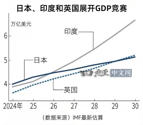 IMF的最新估算显示,日本到2025年将为4.2798万亿美元。日印逆转的时间比以往预测晚了一年。